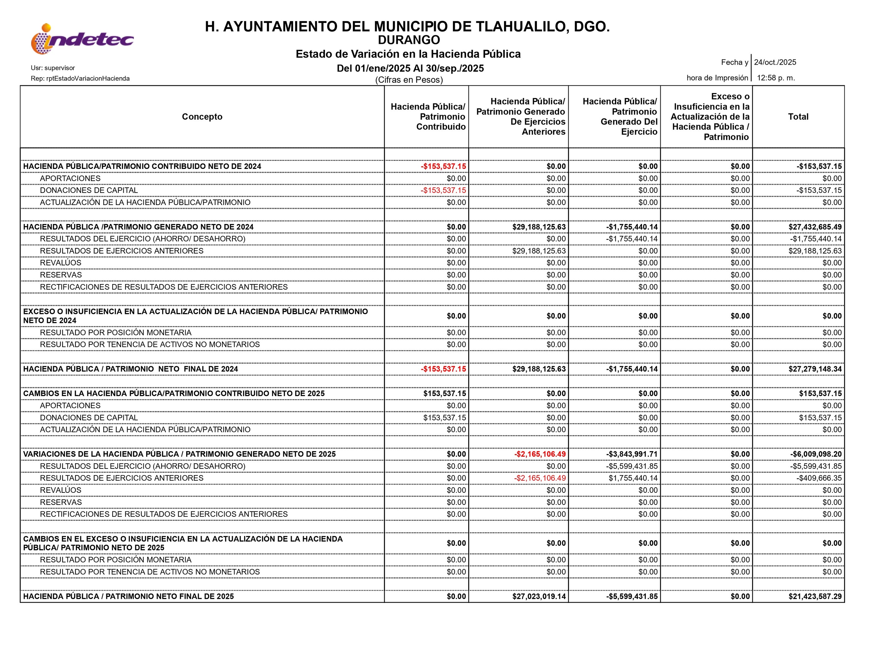D.2.3 ESTADO DE VARIACION EN LA HACIENDA PUBLICA