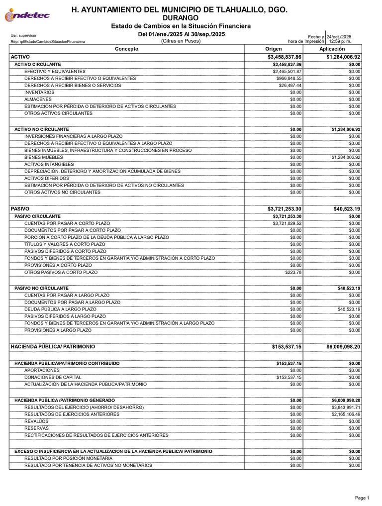 D.2.4 ESTADO DE CAMBIOS EN LA SITUACION FINANCIERA