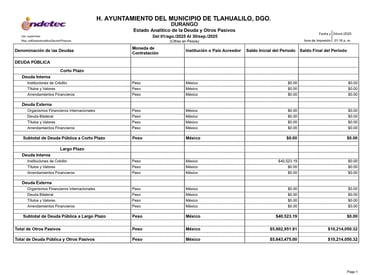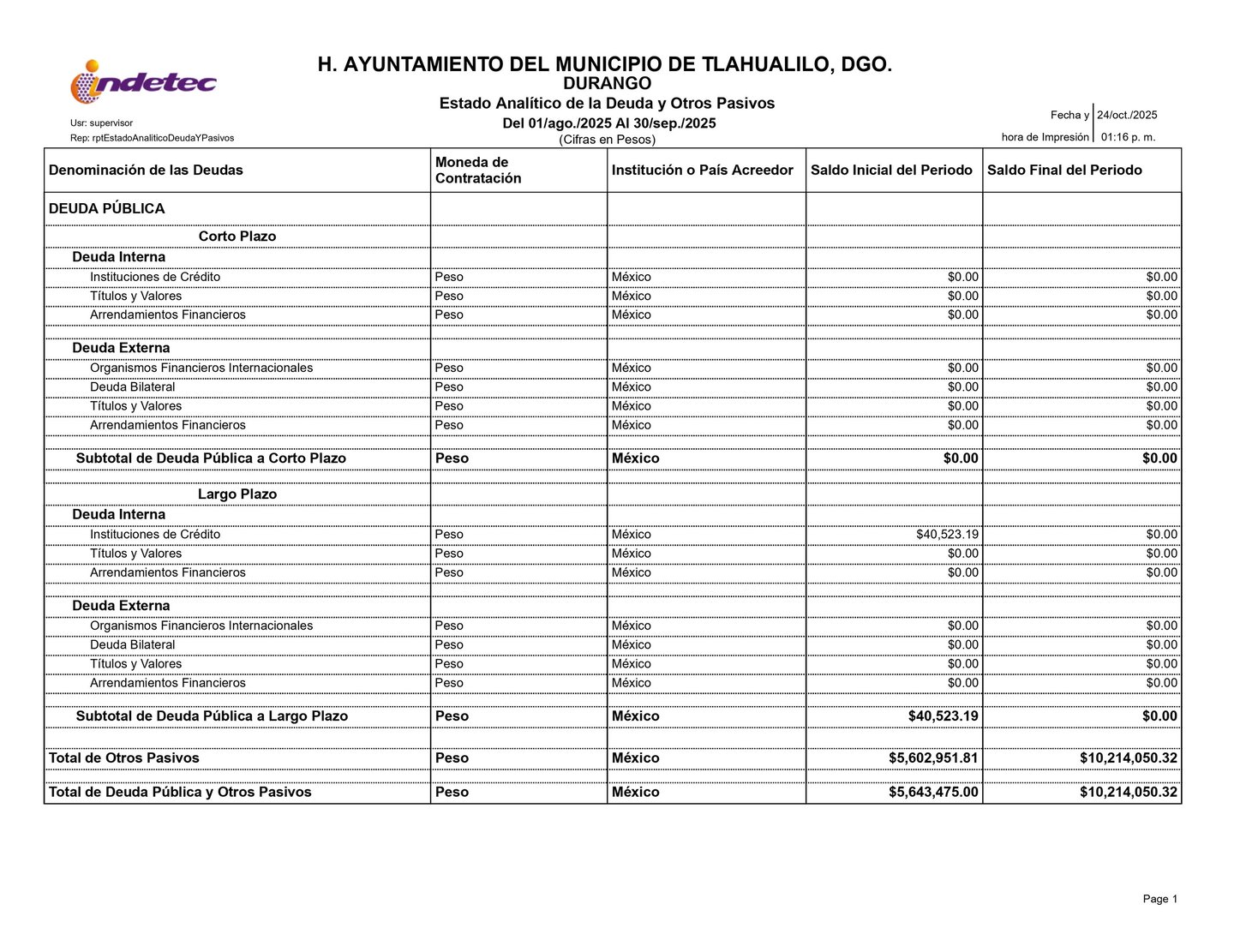 D.2.9 ESTADO ANALITICO DE LA DEUDA Y OTROS PASIVOS