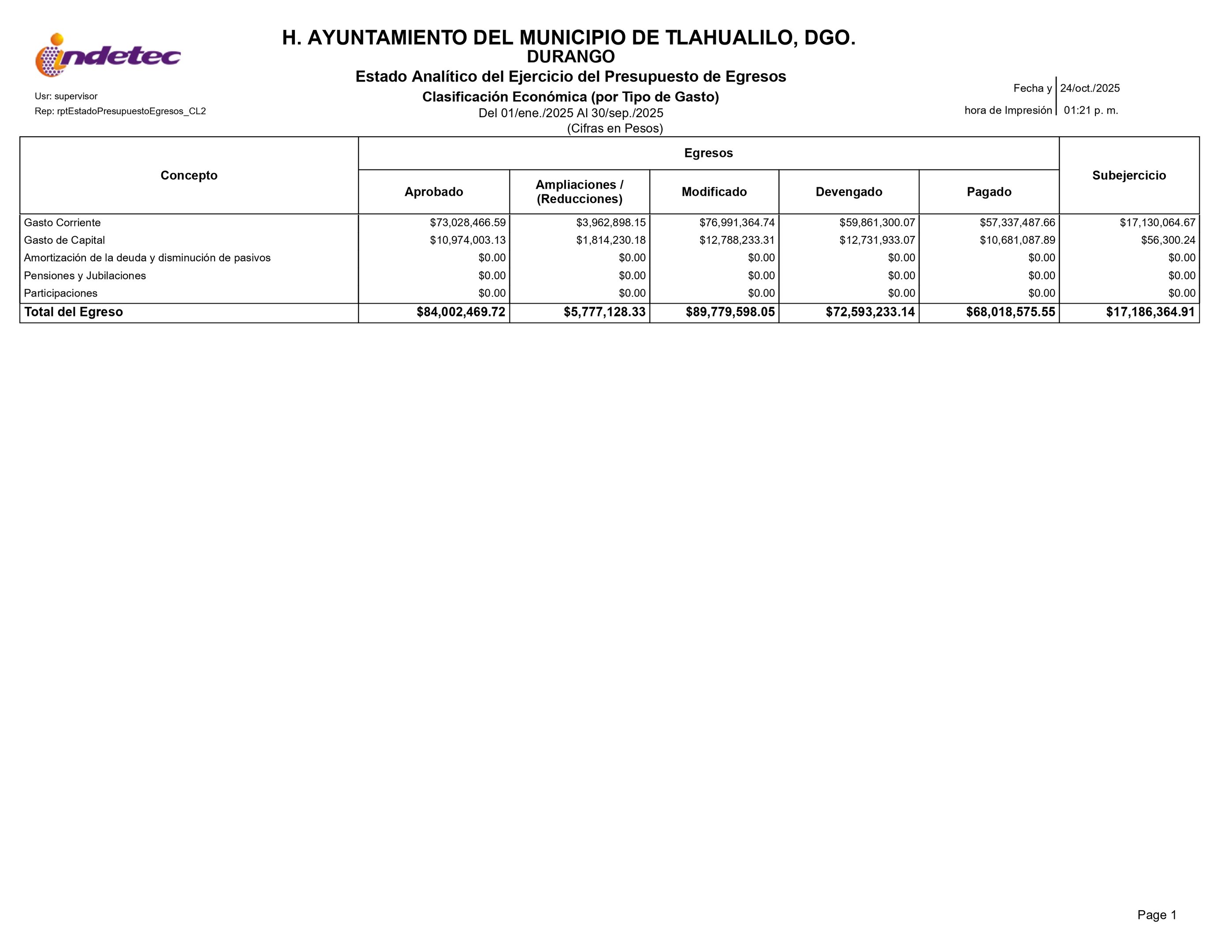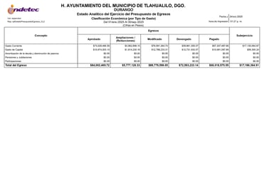 D.3.3 ESTADO ANALITICO DEL PRESUPUESTO DE EGRESOS CLAS ECONOMICA