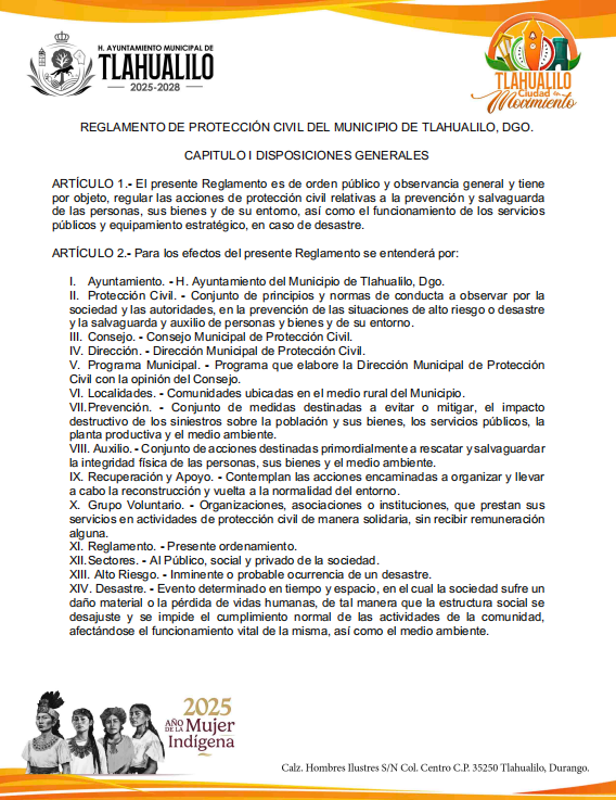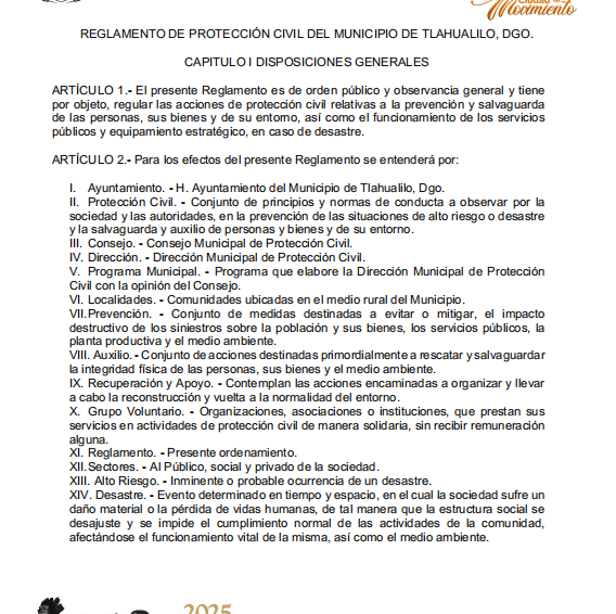 Reglamento de Protección civil de Tlahualilo, Dgo., Administración 2025-2028